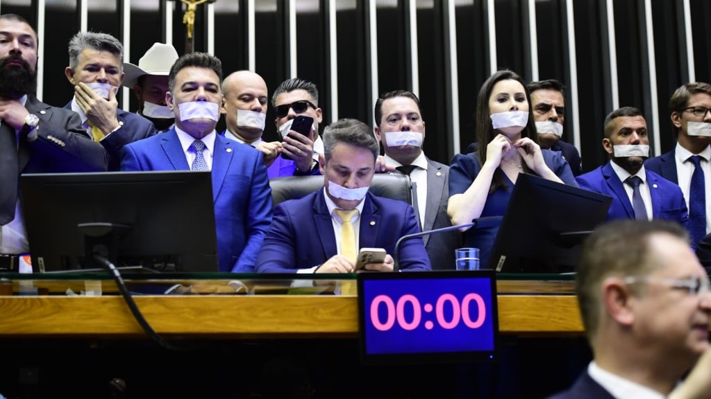 Os parlamentares, na maioria do Partido Liberal (PL), todos apoiadores de Jair Bolsonaro, protestam contra a prisão domiciliar do ex-presidente, decretada nessa segunda-feira (4). Para partidos da base governista, a ação é ilegal e representaria outro 8 de janeiro em novo ataque às instituições da República.